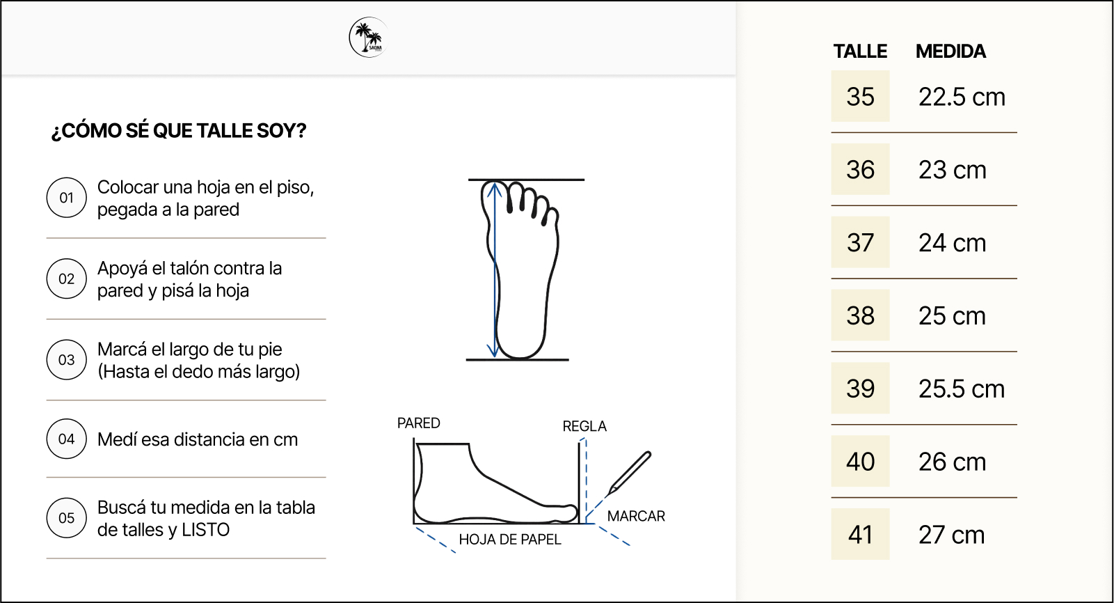 Nuestros calzados están confeccionados artesanalmente, con materiales que se adaptan a tu pie, pero es importante elegir el talle correcto desde el inicio para asegurar tu comodidad.